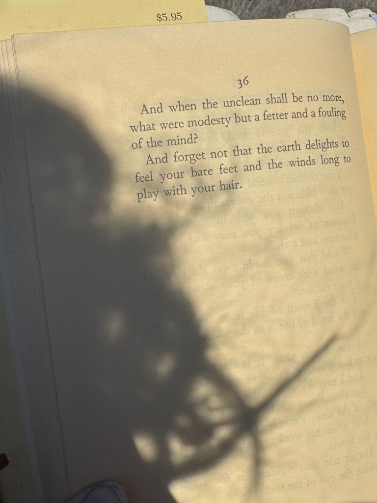 I was sitting on these field notes for over a week before a muse reached out and sang to me. I was laid out, bikini clad on a fallen tree, basking in the warmth of the sun when I read the following excerpt from The Prophet by Kahlil Gibran;