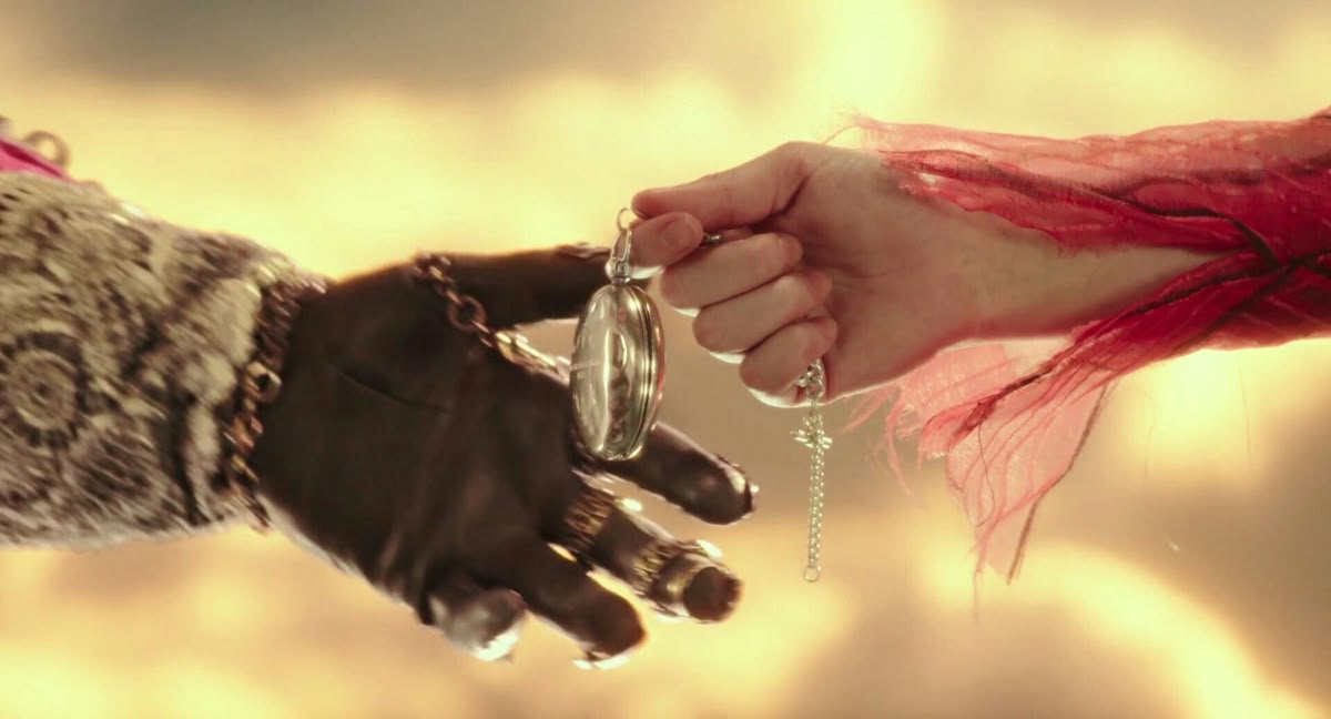The symbol of Time revisits as we meet the Mad Hatter. He shares a discussion with Alice about Time, only, Time is not a concept to the Hatter, but a real character. He suggests that Alice befriend Time or else Time will not obey, or, be good to her. According to the Hatter himself, he once “killed Time”. As a result, the Hatter is damned to perpetual tea time.