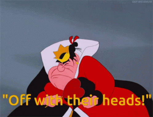 The Queen prefers dismembered subjects because they’re easily enslaved, lack the ability to self-actualize, to desire, or to develop. “The Queen had only one way of settling all difficulties, great or small. ‘Off with his head!’ she said, without even looking round.”(Carroll ch.7).